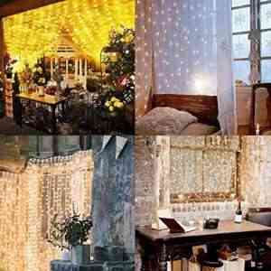 Cortina de luces LED, AGM 3 * 3M 300LEDs luces de fiesta San Valentín al aire libre con 8 modelos de lluminación, impermeable IP55 para la decoración de fiestas/bodas/Navidad (tono blanco cálido)