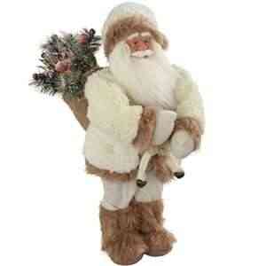 WeRChristmas-Figura-decorativa-de-Navidad-30-cm-diseo-de-Santa-Claus-con-saco-y-abrigo-de-piel-color-blanco-y-marrn-0