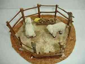 Corral para Belén con ovejas y pollito.