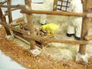 Corral para Belén con ovejas y pollito.